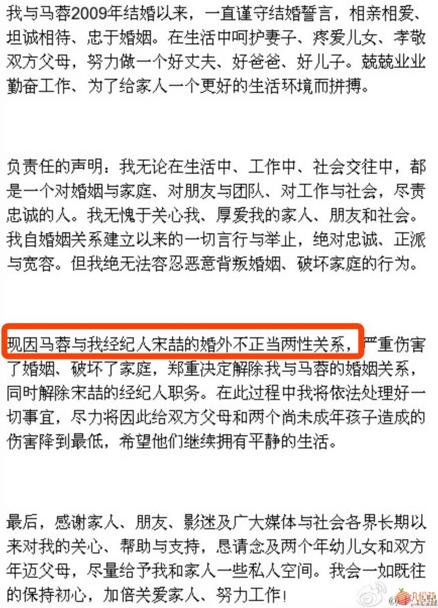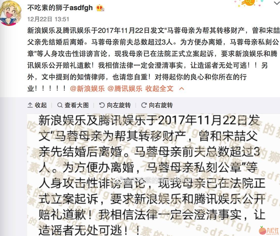 昨天圣诞节成了吃瓜节,先是张翰娜扎宣布分手,没过多久马蓉就发微博谈起自己出轨一事,让不少网友又重新拾起了去年的记忆。 马蓉的绝地反击来了? 马蓉的微博长文有三个重点: 1、马蓉说之前所有网传的消息均不属实,她已经通过法律途径开始处理。 2、马蓉说从去年开始,一直被王宝强打压,对于出轨一事,马蓉说:“十年家庭、生儿育女、付出所有、问心无愧”! 3、王宝强行为过分,没有为孩子考虑,是个不负责任的爸爸,并呼吁王宝强应该多考虑一下孩子的未来。 但关于她跟宋喆偷情一事,却只字未提。 许多网友看到马蓉的声明也纷纷吐槽:“马蓉也太不要脸了吧?” 还有人吐槽,马蓉自己做的风流事不提,选择性失忆,也是无敌了。 还有人觉得马蓉出轨的时候没有为孩子们考虑,出轨都可以这么理直气壮也是没sei了! 去年8月14日,王宝强的微博点名道姓说马蓉和宋喆发生了不正当两性关系,成为全民关注的焦点。 但在马蓉最新声明中。她说自己从去年就被王宝强打压,隔天就跑去法院告状。这件事经北京朝阳人民法院认证,确实是事实。 马蓉虽然告了王宝强,但舆论并不乐观,许多网友都觉得法律不应该偏帮这样的女人。 除了网友,近一年多,关于她的新闻都偏向负面。 甚至还有传马蓉为了转移资产,让自己的妈妈和宋喆的爸爸结婚之后再离婚…… 看到媒体对自己态度不好,马蓉说自己把媒体也一起告到了法院。新浪腾讯都中枪。 她还晒出了法院诉讼费收据,看来这次马蓉是认真的。 从去年事件爆发至今,马蓉对付王宝强最大的武器,莫过于孩子了。 自从马蓉出轨被曝光后,马蓉成了两个孩子的监护人。 王宝强为了争夺两个孩子的抚养权也是绞尽脑汁,至今没有下文。 马蓉的新微博名字叫“不吃素的狮子”,也隐约告诉外界,她不是吃素的马蓉。 话说这个新微博从12月开始更新,马蓉利用这个小号做的文章也是颇有内涵。 从马蓉新微博也能看出,两个孩子一直都在跟着她生活。 马蓉不断地在微博里打造自己的“好妈妈”人设。 她会早上起来给孩子们做营养早餐。 给孩子们买零食。 马蓉是陕西人,还亲自下厨给孩子们做自家地道的陕西凉皮。连豆芽、面筋都是DIY。 ,这一出“舌尖上的中国”确实精彩! 马蓉除了亲自下厨,还会亲自教孩子们亲手做饼干~ 网友就指出:“这些一看就不是真的。不知道是不是马蓉亲手做的,反正那个凉皮不相信会有妈给小孩子放那么多辣椒,想营造形象还不装的像一点,真是笑掉大牙。” 还有人发现,马蓉把指甲涂得漆黑,吐槽道:“这些应该是保姆做的,马蓉那黑漆漆的指甲沾在面粉上还不给沾坏了啊?开什么国际玩笑。” 马蓉不断卖“好妈妈”人设,这是要获得外界的同情和支持吗? 马蓉曝光的一段视频中,两个孩子画画,只把马蓉画入画中,孩子爸爸王宝强则消失得无影无踪。 除了美食,还有其他消遣,闲下来看看书听听音乐,孩子们还会给妈妈拍照。 马蓉闲着没事,还会在微博上撒鸡汤。还说人有三六九等之分,自己不想做太多无谓的争辩和纠缠。字里行间似乎都在透露着自己有多委屈。 就连“江歌案”她都要插一脚,转发这条吐槽江歌妈妈做无用功的微博,莫非马蓉是在支持刘鑫? 经历这么多,马蓉也感慨道:“守住心里的那份光与热,即便你被乌云笼罩,但身体里会有一把利剑,不需要期盼乌云散去,它早晚会被你刺穿”。似乎她对这场官司很有把握的样子。 王宝强离婚案持续一年多至今没有下文,财产的分割,孩子的抚养权,究竟是怎么分配还无从得知。 如果真的像马蓉所说,王宝强侵犯了她的名誉权,搞不好还要再赔偿给马蓉一大笔钱……王宝强会变成婚变的输家吗? |