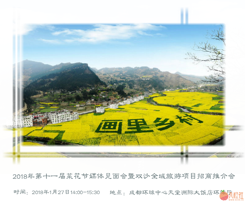 原标题:泸州古蔺双沙镇2018年菜花节及旅游项目推介会即将召开 1月27日,以“田园花镇·画里乡村”为主题的“2018年第十一届菜花节”媒体见面会暨双沙全域旅游项目推介会将在成都环球中心天堂洲际大饭店拉开序幕。