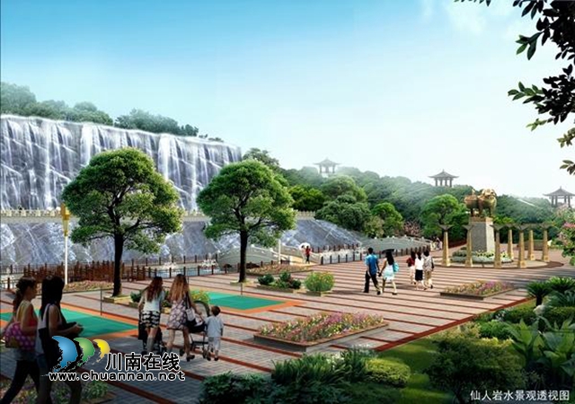 :位于泸州市纳溪区上马镇80米高的“仙人岩瀑布”项目正在进行扫尾工程施工,预计本月底完工后即投入使用。