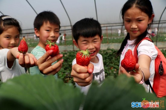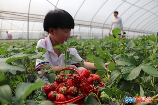 “哇,好多草莓啊!”、“好甜啊!”、“草莓都吃饱了!”……4月4日,泸州市纳溪区新乐镇“智慧三江”银坤草莓园的大棚里迎来泸州淡思学校(小学部)上千学生体验采摘乐趣。 孩子们展示采摘的草莓 浩浩荡荡的队伍一走进草莓园,既兴奋又激动,既好奇又新鲜。每走进一个大棚都人声鼎沸、热闹非凡,只见孩子们在鲜红的草莓间来回穿梭,“这个好大!”、“这个甜!”大家互相比试谁摘的更大更红更好吃,玩的不亦乐乎!没过多久,只见孩子们的双手、脸上、衣服上已被草莓汁浸染,变成了“大花脸”,大家你望望我,我望望你,不由得哈哈大笑起来。 “太爽了!吃草莓吃到饱,这简直像在做梦一样!我还要给爸爸妈妈带点回去,让他们也尝尝这新鲜的草莓!”“来拍张照,我要把这幸福时刻保存下来,回去让朋友们看看这里的草莓有好多!”许多孩子不但吃饱,还采摘了许多带走,“满载”而归。 一名学生正在采摘草莓准备带走 近期,“智慧三江”银坤草莓园的“章姬”“红颜”等优质草莓相继成熟,迎来采摘旺季,空气中到处弥漫着草莓的清香,鲜艳的草莓细嫩多汁、口味甘甜,让人垂涎欲滴,吸引许多城区及周边城市游客争相前来体验采摘乐趣。 “智慧三江”现代农业示范园现已建成葡萄庄园、葡萄酒庄、草莓园、蓝莓庄园、蔬菜采摘园、荷花主题公园和蒙古风情部落等多个园区。游客可以从中体验生态采摘、休闲娱乐、农业观光、休闲农耕和现代农业科技。银坤草莓园占地200亩,年产草莓20余万斤,年产值500余万元。目前有100多名村民在草莓园务工,户均收入3万元以上。 近年来,泸州市纳溪区紧紧围绕推进农业供给侧结构性改革为主线,以优化供给、提质增效、农民增收为目标,以绿色发展为导向,加快农业现代化建设,大力实施“一村一品”战略,着力推进区域集中连片发展观光体验农业,促进农旅融合,助力乡村振兴。 |