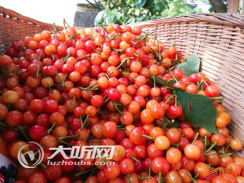 况场街道红山村5社12队的果农黄品容坐在自家院子里,向来往市民售卖从自家樱桃树上摘下的新鲜樱桃,看着市民们纷纷都来采摘、购买樱桃,黄品容的脸上笑开了花。她说自家的樱桃种植园里已经种植了七八十株樱桃树,今年能产1千多斤樱桃。
