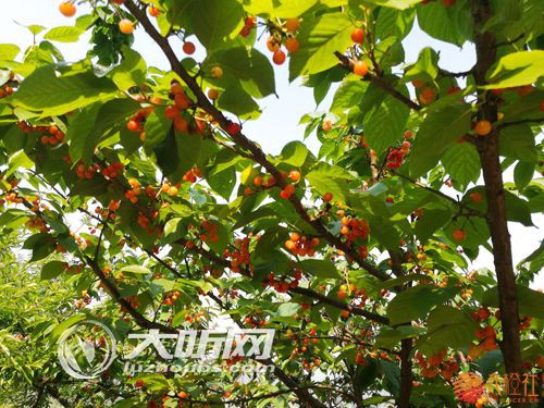 据介绍,4月以来红山村的千余亩樱桃进入成熟期,吸引了大批城里人前去踏青采果,村民们足不出村在家门口实现增收致富。 记者站在山顶远望,漫山遍野红彤彤的樱桃树果压枝头,颗粒大、色泽鲜艳、酸甜可口,樱桃林里,市民采果的身影随处可见,拍照、采摘……欢声笑语在林间回荡。