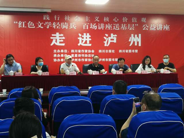 5月12日上午,四川省作协“红色轻骑兵.百场讲座送基层”公益讲座在泸州市图书馆4楼举行,此次讲座由文学评论家桫椤、星星诗刊杂志副社长杨献平主讲。