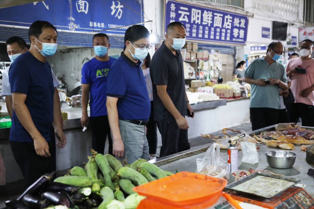 检查农贸市场 唐栋良先后到大山坪街道、华阳街道,通过实地查看和听取汇报的方式了解了西路泰盛农贸市场、新警校宿舍、佳乐金街的巩固创文工作开展情况。