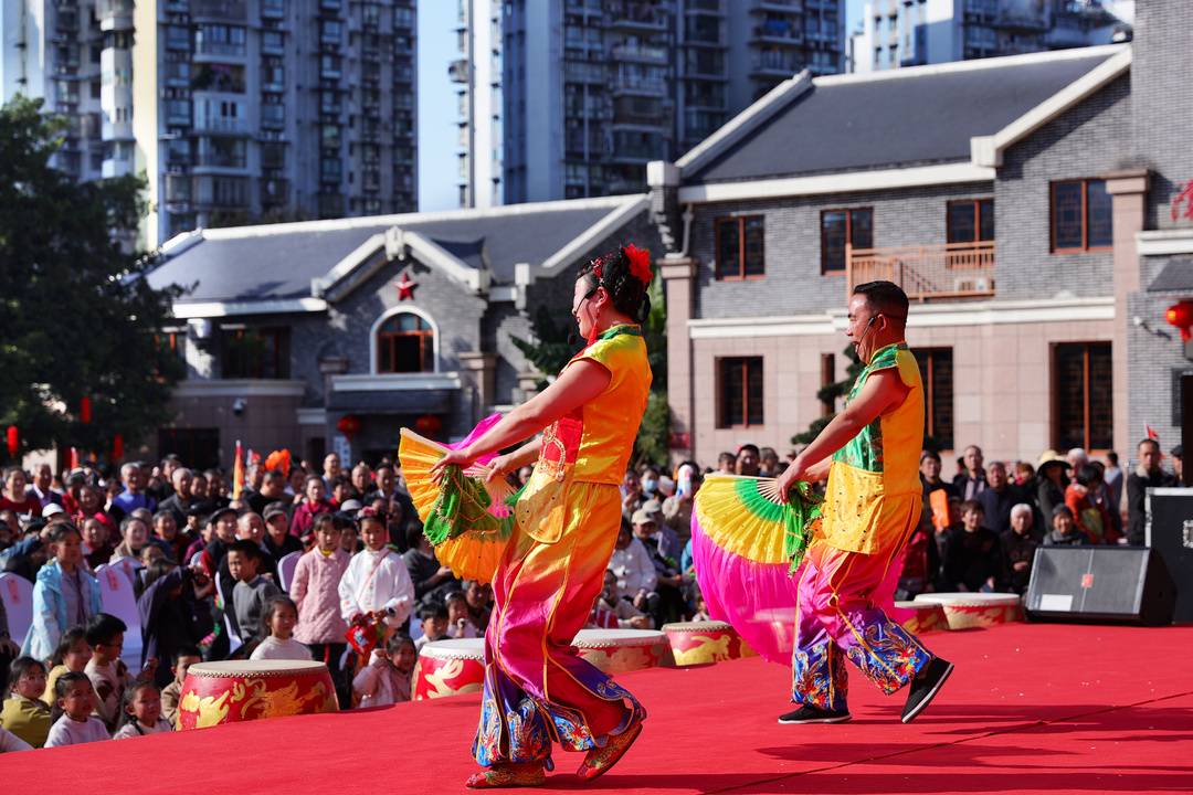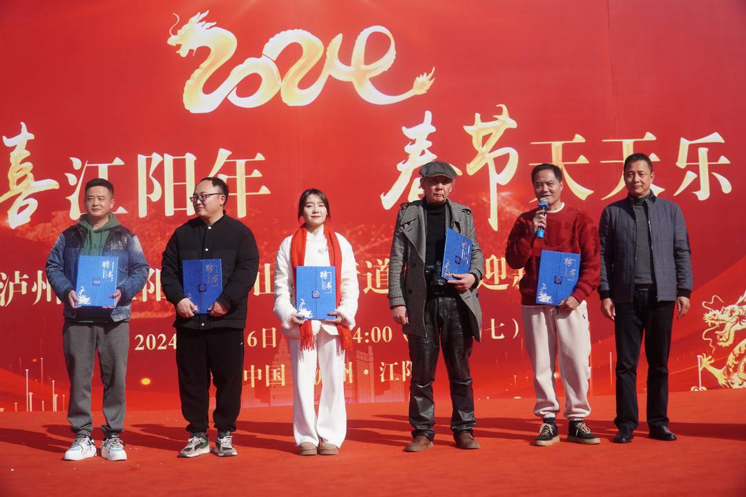 颁奖现场 据悉,活动举办以来大山坪街道共收到参赛作品100余条,活动现场也向获奖的18名选手颁奖。并聘请易超(三套车乐队总策划)、王伟、张淑儿等知名人士为大山坪街道城市宣传官。 线下:“文体活动+舞蹈互动”传喜气 “好!再来一个!”鼓舞、歌舞、快板、二人转,精彩的节目炒热了场子,收获了阵阵喝彩,欢声笑语带来了新春的喜悦。魔术、杂耍、杂技、川剧变脸,更是引得台下观众连连惊叹,大呼过瘾。