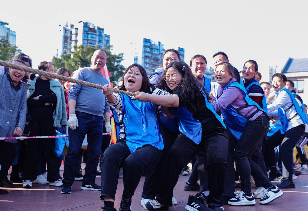 展销活动 “冲啊!”广场的另一侧,里三层外三层地围满了人,各种文体活动妙趣横生。赶猪入圈、猪八戒背媳妇让围观群众笑得合不拢嘴,拔河比赛、旱地龙舟赛展现了队员们的团结一致,旁边啦啦队“加油加油”的鼓劲声不绝于耳。一时间,加油声、欢笑声、喝彩声汇成一曲交响乐,回荡在公园上空。