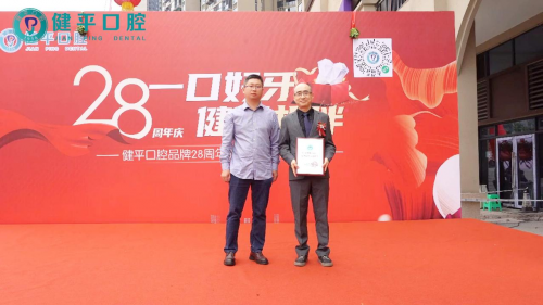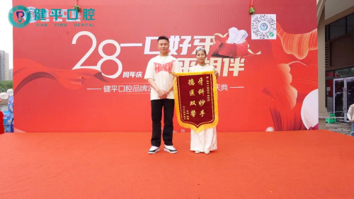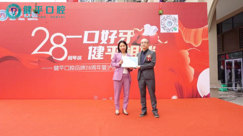 致辞结束后,合作单位代表、嘉宾代表和客户代表分别上台为健平口腔授予牌匾和锦旗,并合影留念。