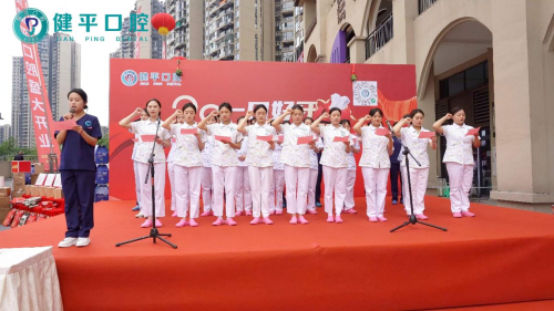随后,健平口腔全体医护人员上台、集体宣誓,承诺将在今后以高尚的医德、精湛的医疗技术和家人般的体贴热情,为广大的患者提供优质、专业的口腔诊疗服务。