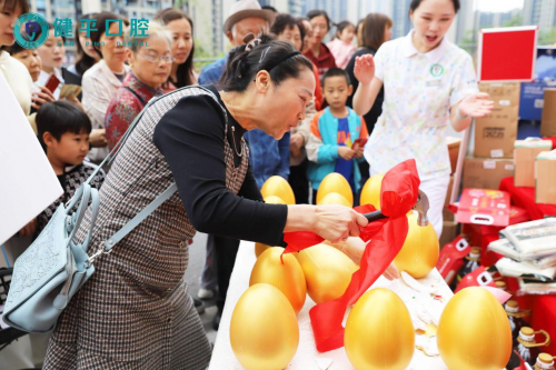 开业当天更有幸运大抽奖和相关歌舞表演进行助兴,将当日开业氛围推向了高潮。 健平口腔工作人员介绍,开业期间不仅有砸金蛋、抽奖券等抽奖好礼,更有免费口腔检查、进店礼、口腔项目专享特价、充值赠送等特惠好礼套餐和多重福利。