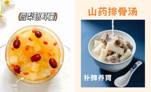 食疗方:①雪梨银耳羹 润肺止咳(银耳1朵,雪梨1个,红枣5颗,枸杞1小把,适量冰糖) 食疗方:②:山药排骨汤 健脾益胃(排骨300g,山药400g,红枣30g,枸杞5g,姜1小块,适量香葱) 霜降养生-起居防寒保暖是关键