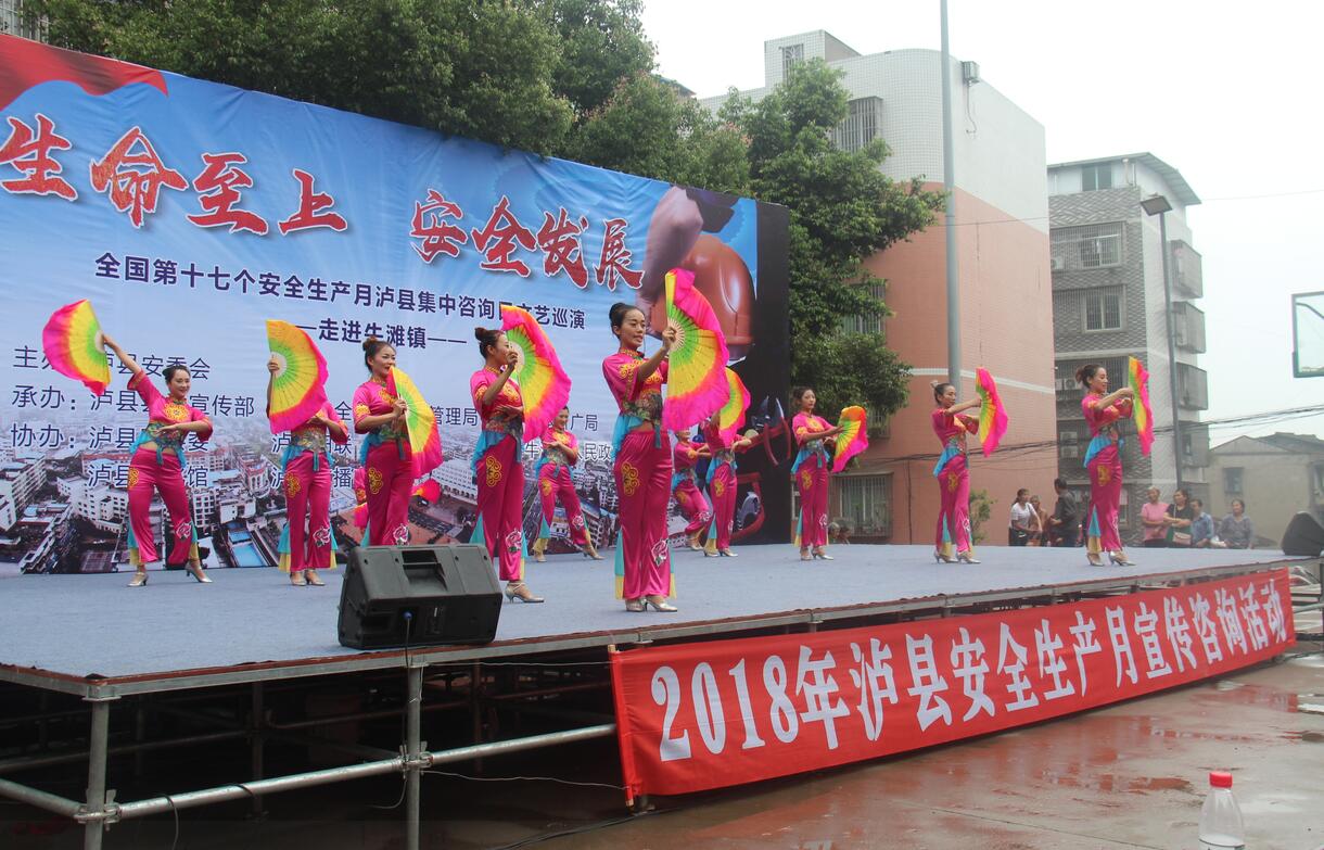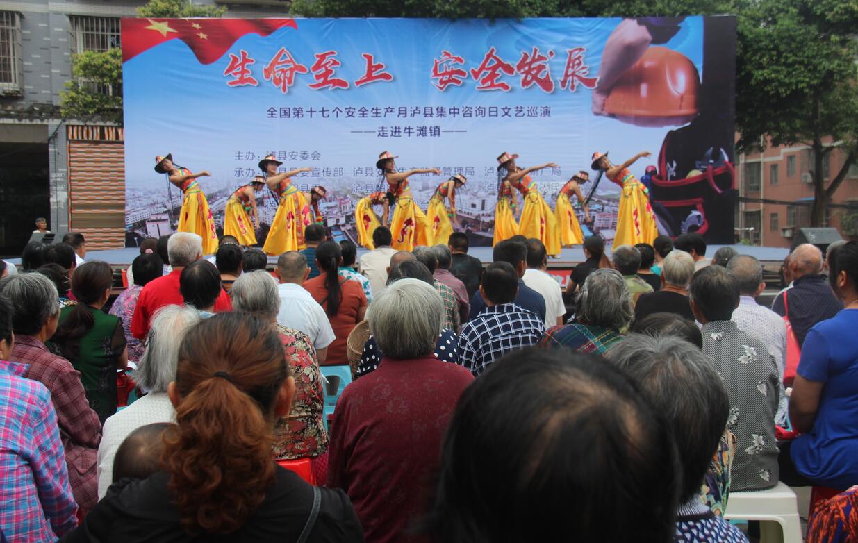 6月19日,2018年安全生产月集中咨询日文艺巡演活动走进牛滩镇。泸县水务局、运输管理局,牛滩镇安办、食药监所等近20余个部门参加活动。
