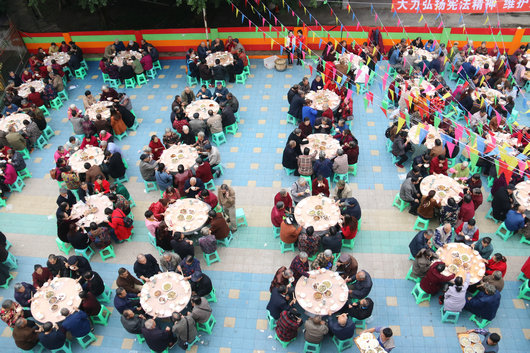 | 10月16日,泸州市龙马潭区红星街道在枫林小区举行“九九重阳节,浓浓敬老情”系列活动,通过组织辖区老人开展免费体检、观看文艺演出、吃坝坝宴等多种形式欢庆即将到来的九九重阳节,吸引了近千名老人参加。 “今天简直太高兴了,这么多的老年人聚在一起过重阳,看节目,吃坝坝宴……”参加活动的红星社区居民姚存芳高兴的说道,“社区啥子都安排的归归一一的,这个重阳节过巴适了的!” ![]() 上菜咯 “此次坝坝宴我们摆了近90桌,邀请附近小区的近千名老人参加,特意选择高营养、易消化、清淡的菜品,从食材的选购到加工街道都安排了专人严格把关,确保让老人们吃的放心,吃的安心,吃的舒心。”龙马潭区红星街道红星社区党委书记李伟说道,“我们街道搞重阳坝坝宴已经搞了很多年了,重阳坝坝宴已经成为了我们街道孝老爱亲的一张特色名片,通过街道、社区共同努力营造浓厚的孝老爱亲氛围,近年来红星街道涌现了一批尊老爱老的模范家庭。”![]() 坝坝宴现场 ![]() 幼老同过生日 ![]() 义诊现场 据悉,从2012年开始,红星街道就开始举办重阳坝坝宴,邀请辖区内老人免费前来吃坝坝宴,每年都会集中表扬一批孝亲爱老模范和文明和谐家庭,在街道营造尊老敬老良好氛围。2015年,红星社区获得了全国敬老文明号荣誉,同时也是四川省社区居家养老示范社区。责任编辑/熊一帆 |