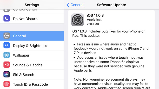 @MacX【苹果发布 iOS 11.0.3,修复触感反馈和屏幕无响应】这是自全新 iOS 11 发布之后,苹果推出的第三个升级补丁。iOS 11.0.3 可以通过无线 OTA 进行升级,还修复了触感反馈和屏幕无响应、音频和触感反馈在部分 iPhone 7 和 iPhone 7 Plus 设备上无法正常工作等问题。