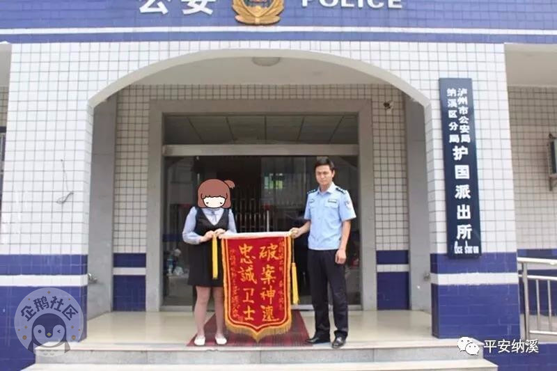 4月20日上午,营业厅员工王女士拿着一面“破案神速、忠诚卫士”的锦旗送到纳溪区公安分局护国派出所,感谢民警为营业厅挽回损失。
