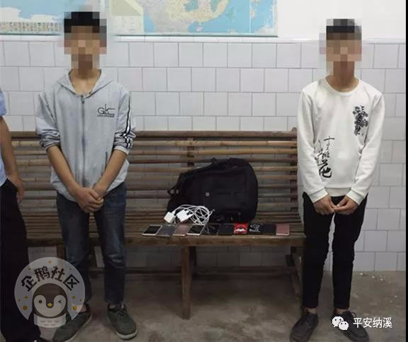 护国派出所联合刑侦大队、网安大队成立专案组,多次到案发现场勘查取证。经过多方努力后,专案组最终锁定嫌疑人小杨(男,14岁,化名)、小肖(男,14岁,化名)。4月19日,民警在护国镇仙峰街将涉嫌盗窃的嫌疑人小杨、小肖抓获,当场从两人身上搜出三部手机。