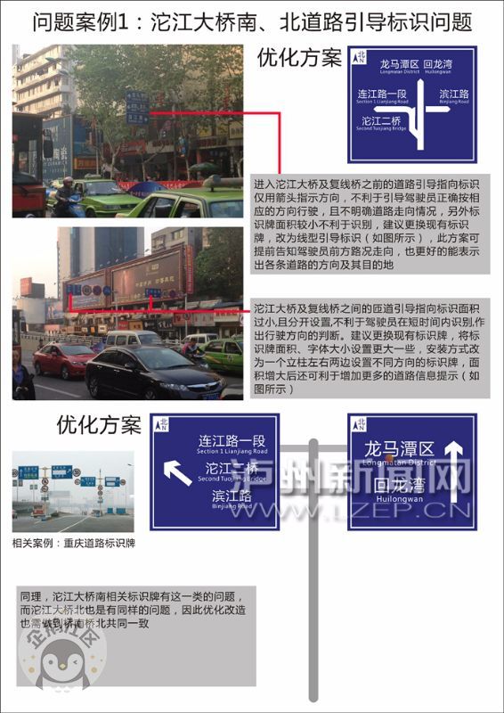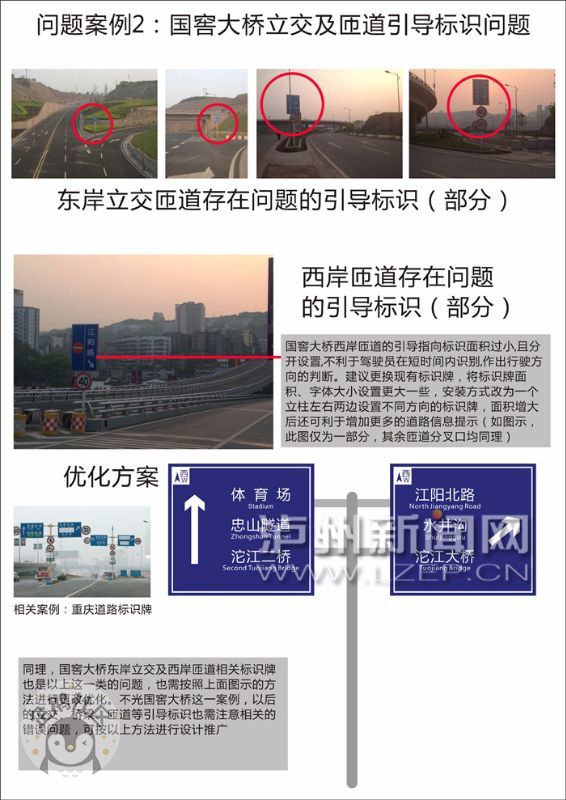 张洵说,虽然找路、辨别方向等问题,对泸州本地人来说不是太麻烦,但随着泸州主城区扩建的步伐越来越快,不做好这方面的工作,就不能更好地体现交通便民。如果是外地来泸者,遇到这样的情况也许会出现一些不必要的麻烦。虽然现在智能导航的普及率比较高了,但关键时候还需结合地面的标识判断前往的道路方向。
